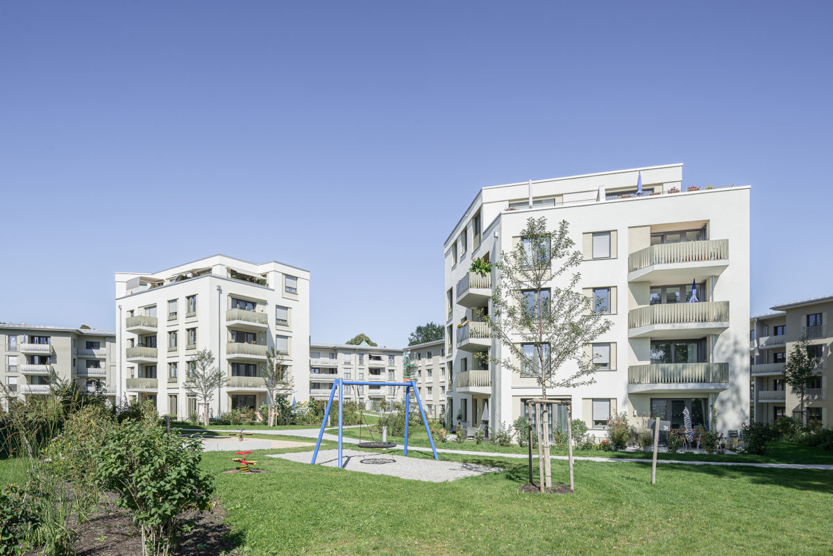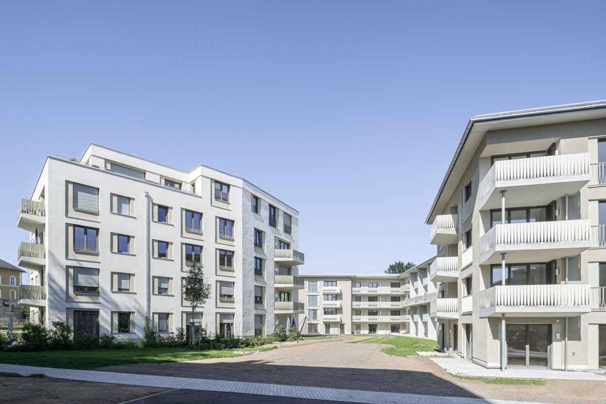 Entstanden ist ein modernes Stadtquartier, bestehend aus drei Punkthäusern mit wabenförmigem Grundriss und zwei längsgestreckten Gebäuden. Insgesamt 75 Eigentumswohnungen sowie 45 Mietwohnungen formen das moderne Quartier. In den Zwei- bis Fünf-Zimmer-Wohnungen mit 55 bis 144 Quadratmetern finden Singles, junge Paare aber auch große Familien Platz zum Wohlfühlen.